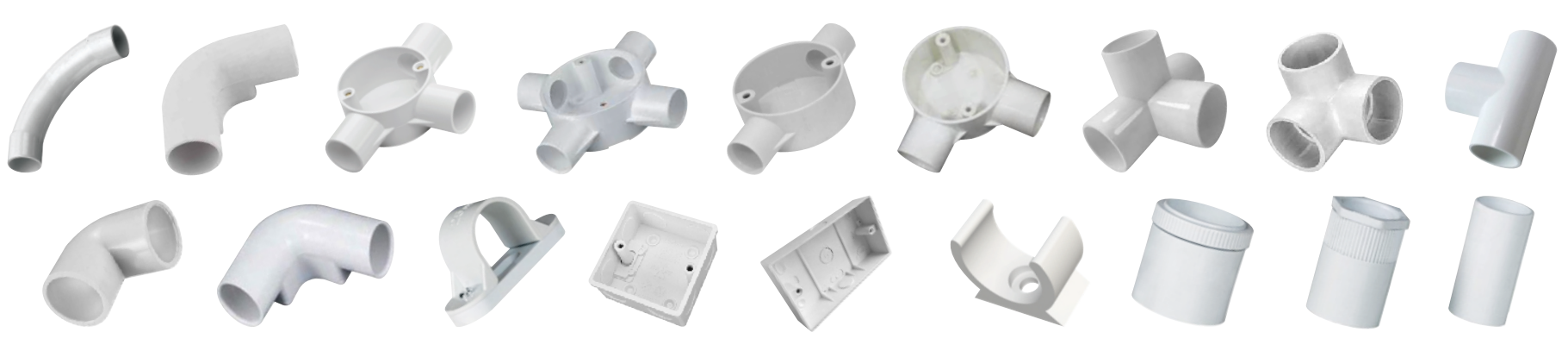 Fusion Electrical Conduit PVC Pipes & Fittings are manufactured from a specially formulated unplasticised polyvinyl chloride (uPVC) to meet the most stringent Indian and International standards. Our products are made of Extra Super High Impact materials which make them safe for use in harsh environments. The products are manufactured in accordance with IS: 9537 Part 3 for PVC conduit pipes, IS: 3419 for PVC conduit fittings.