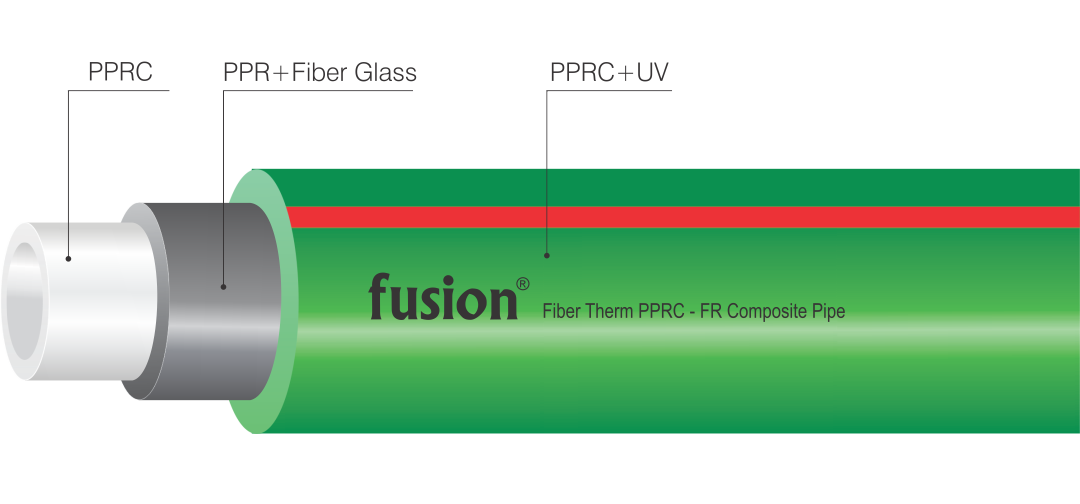 Fusion fibertherm is multiplayer with fiber reinforced and UV resistant makes its mechanically stabilized through a fibertherm mix integrated in the middle layer and outer layer is resistant against UV sun rays and inner layer is ppr food grade material